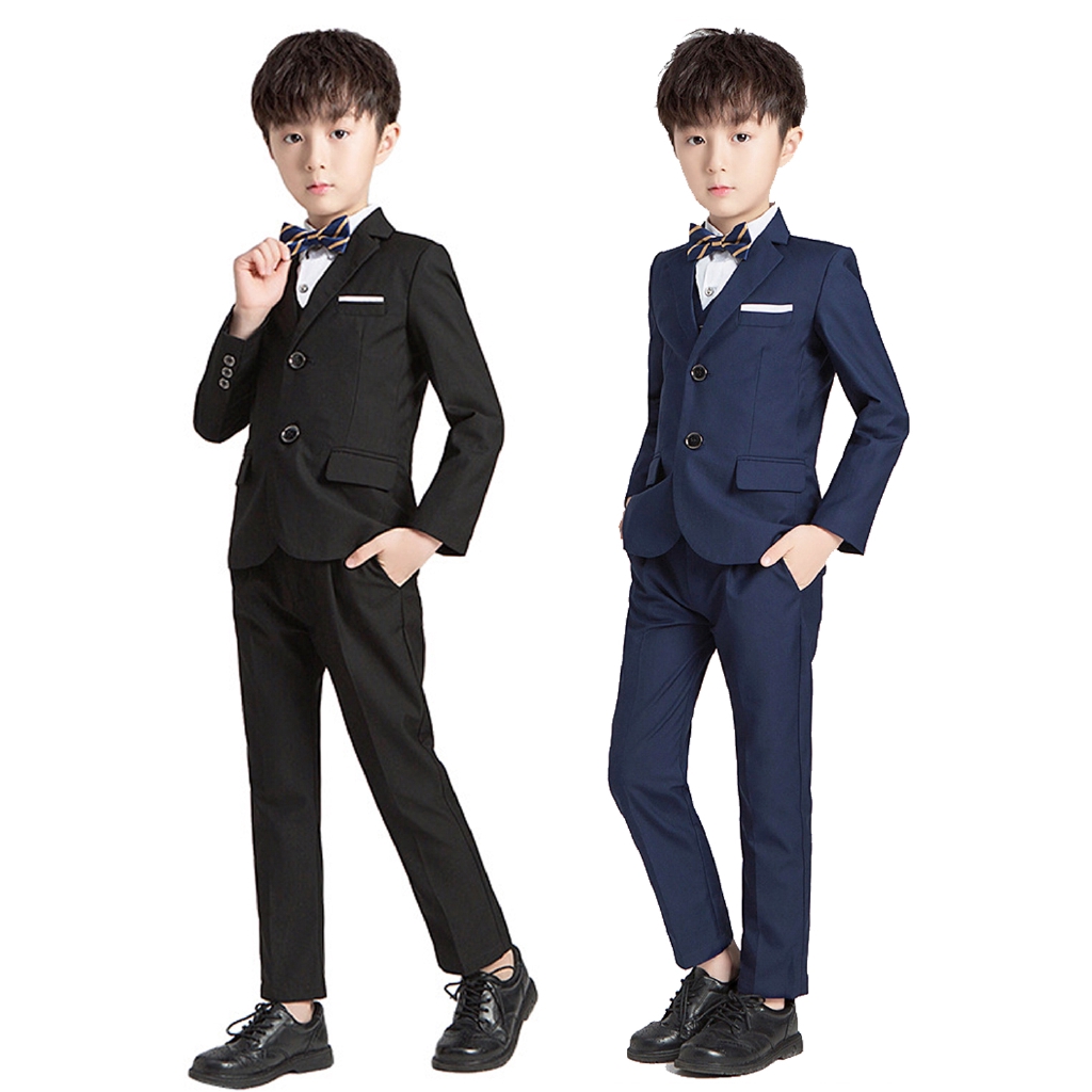 Toddler Baby Boy Suit Wedding Party Formal Wear Black Navy Blue Tuxedo Outfits Children Shirt Vest Jacket Pants Birthday Clothes Set Shopee Singapore